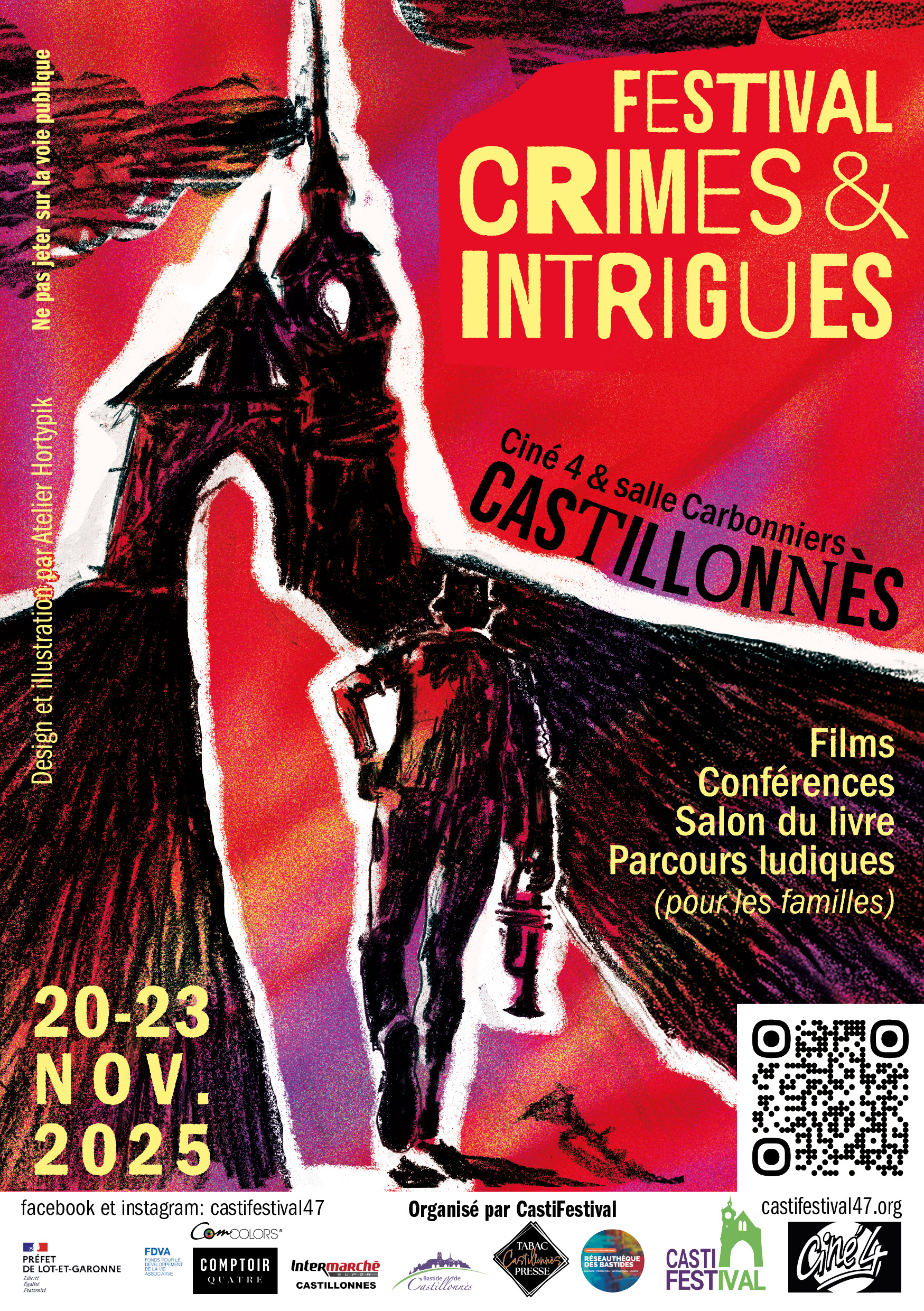 Du 20 au 23 novembre 2025, Castillonnès devient le théâtre du polar vivant. Pour sa 1ʳᵉ édition, le Festival Crimes & Intrigues vous plonge dans un monde d’enquêtes, de récits, d’auteurs passionnés et de mystères à résoudre